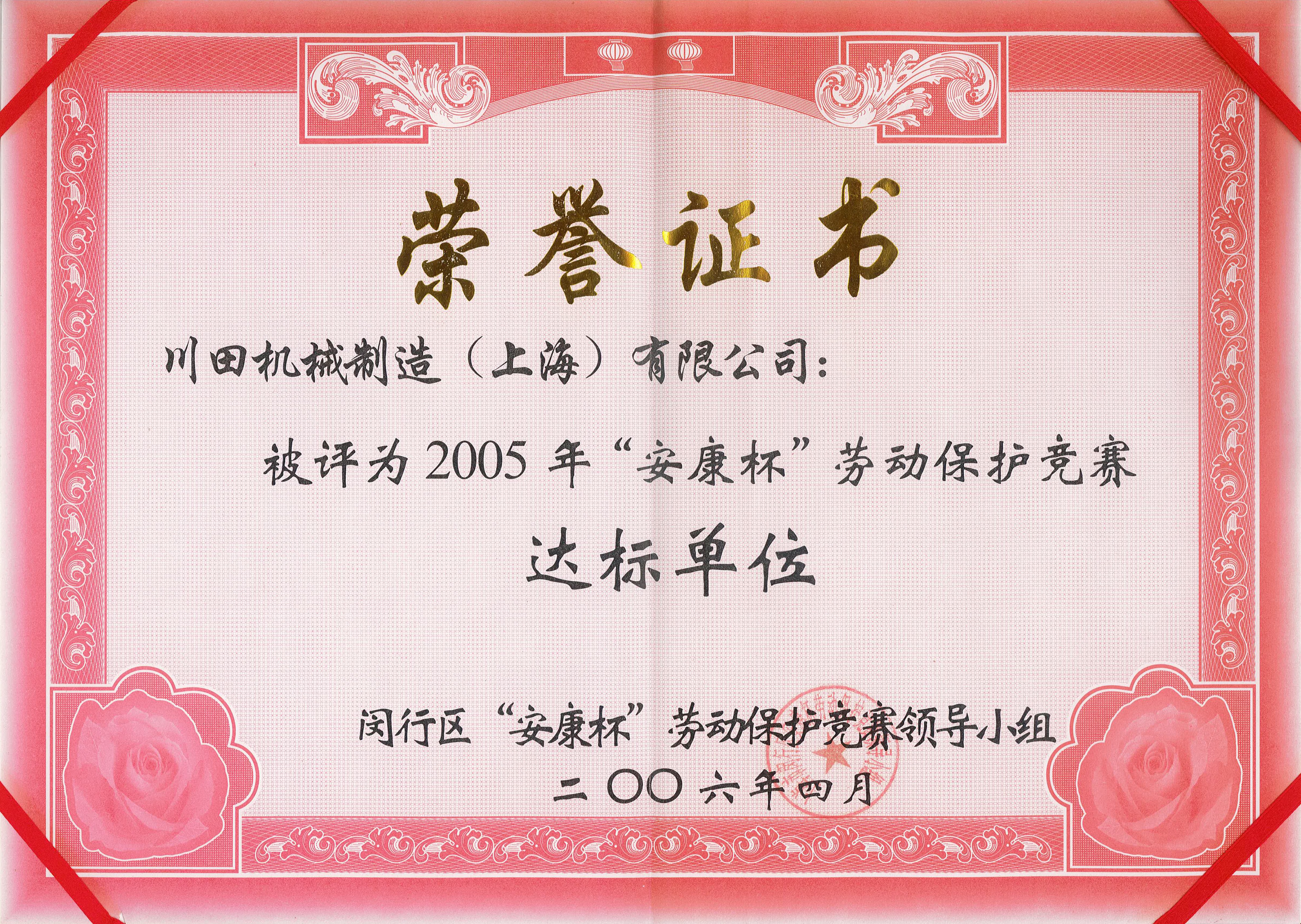 2005年度閔行區(qū)労働保護競技會記念賞