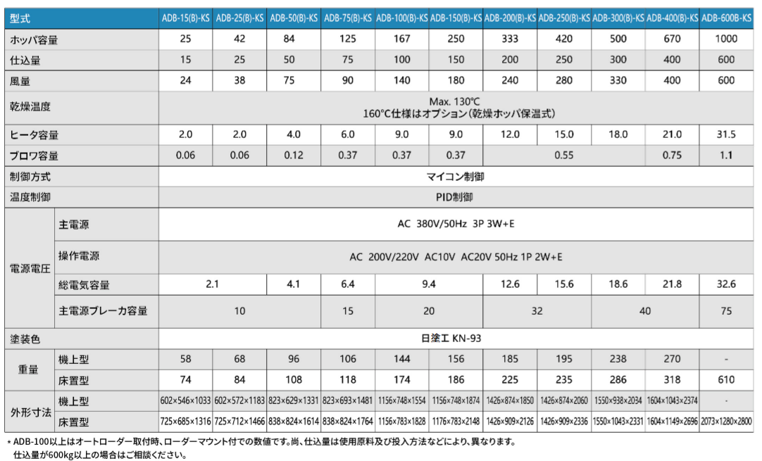 簡易操作機能撘載の成形工場に最適な亁燥機